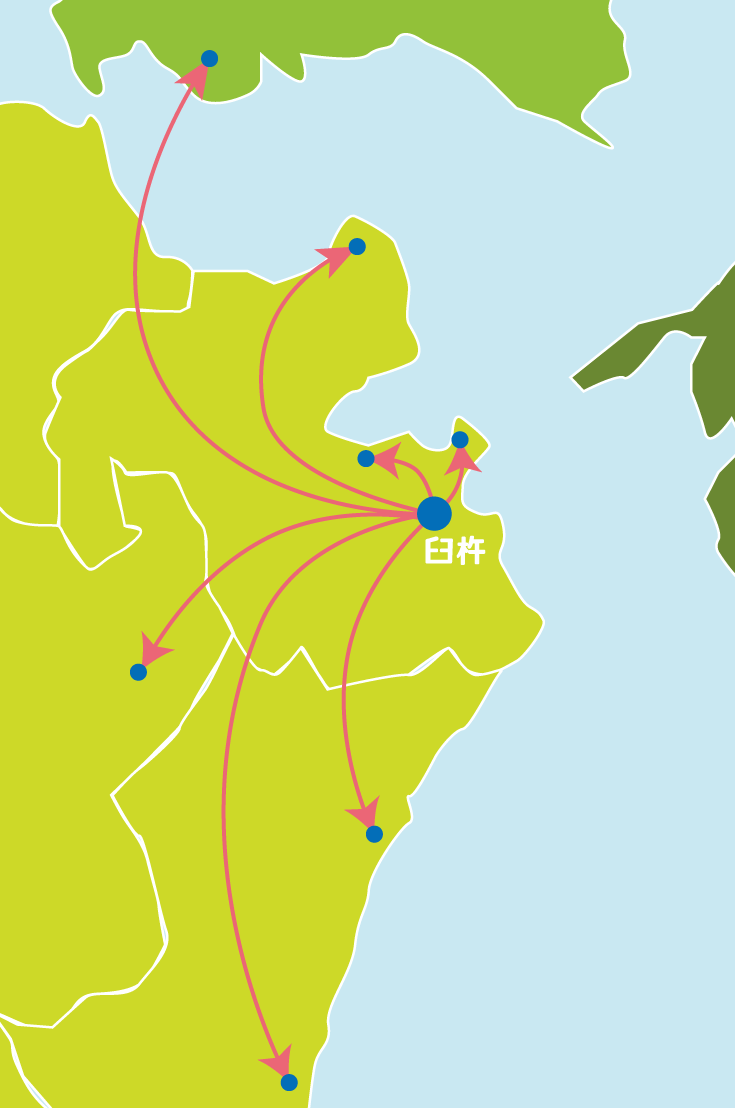 戸髙グループは石灰石・硅石の採掘加工販売をはじめとして、製品の輸送や建設・商事部門等、幅広い事業を総合力のある企業づくりを目指しています。 輸送部門会社である臼津鉱運株式会社は、大分市をメインに県内外へ製品の輸送を行う臼杵事業所と鉱山内で石灰石の運搬を行う神野事業所があります。